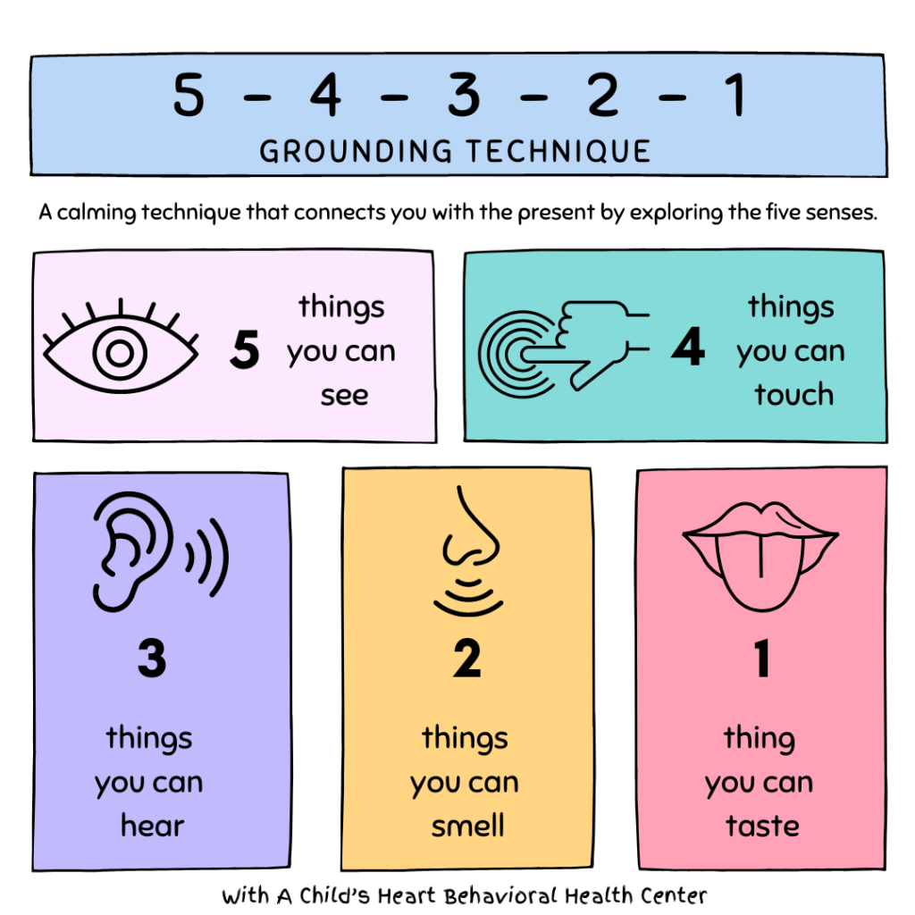 Grounding exercises help bring your attention away from fear-based thoughts and focus it on the present. A popular grounding technique is the 5-4-3-2-1 method, which involves identifying: