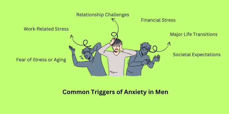 Anxiety in men may be triggered by societal pressures, personal challenges, and biological factors, but it is a manageable condition with the right support and tools. Recognizing these triggers, understanding how anxiety manifests, and implementing coping strategies can create a path toward relief and resilience.